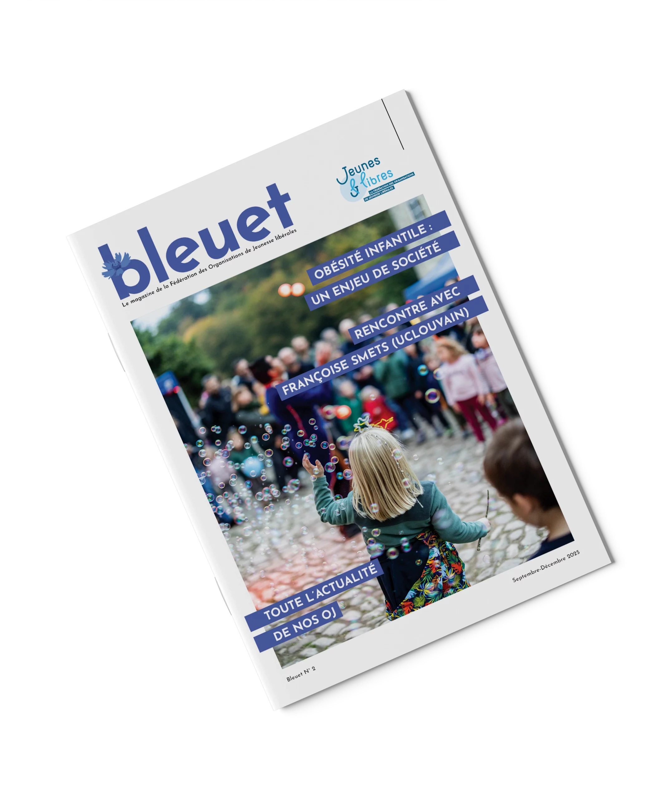 Dans ce numéro du Bleuet, vous retrouverez les actualités de la fédération (Missions Fédé), de la Besace, Délipro Jeunesse, la Fédération des Étudiants Libéraux, les Jeunes Mutualistes Libéraux, les Jeunes MR, O’YES, ReForm et les RYD Wallonie-Bruxelles via l’OJ Express. Vous y découvrirez également trois « focus » sur des activités de nos OJ (Jeunes MR, ReForm, RYD), un article de fond consacré à l’obésité infantile, des suggestions culturelles, ainsi que l’interview exclusive de Françoise Smets, pédiatre mais aussi rectrice de l’UCLouvain (Université Catholique de Louvain).
